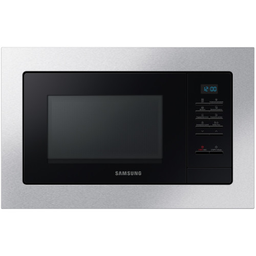 Встраиваемая микроволновая печь Samsung MS20A7013AT позволяет разогревать, размораживать и готовить различные продукты под воздействием микроволн. Данная модель характеризуется объемом 20 л. На панели управления расположены кнопки и дисплей. Для защиты от случайного изменения настроек реализована функция блокировки панели управления. Внутреннее покрытие на основе износостойкой биокерамической эмали отличается экологичностью и легкостью в уходе. Навесная дверца легко открывается нажатием кнопки. В комплекте с Samsung MS20A7013AT поставляются роликовая подставка и стеклянный поддон.