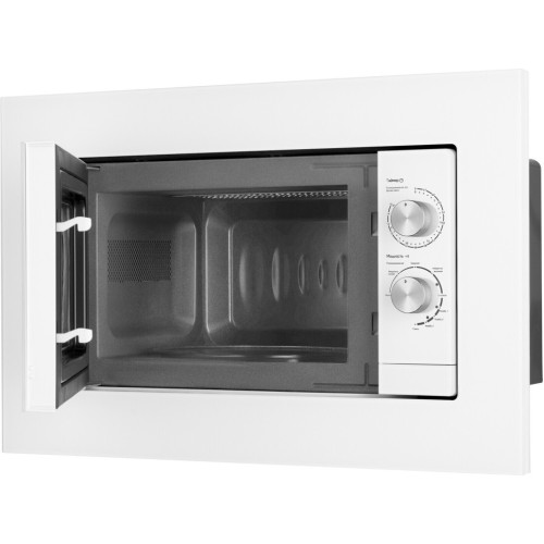 Встраиваемая микроволновая печь Weissgauff с объемом 20 литров, выполненная в белом закаленном стекле, равномерно разогревает еду при помощи поворотного стола, а также оснащена грилем с возможностью работы в комбинированном режиме! Объем 20 литров дает вам полную уверенность в том, что вы сможете разместить в ней сразу весь необходимый объем пищи! Поворотный стол диаметром 245 мм не только обеспечивает равномерный прогрев блюда со всех сторон, но и удобно извлекается из камеры, делая легкими его очистку и уход! Камера из нержавеющей стали воплощает в себе надежность и качество, ведь её стенки прочные, устойчивые к перепадам температур и механическим воздействиям, а также легко отмываются от возникающих загрязнений! Встроенный гриль - позволит вам добиться эффекта аппетитной золотистой хрустящей корочки! Комбинированные режимы- при которых микроволны и гриль работают вместе, дополняя друг друга, открывают еще больше возможностей по приготовлению в данном устройстве! Разморозка по весу - позволит подготовить замороженные продукты к дальнейшему приготовлению, обеспечивая равномерный результат без перегретых краев или непроработанных участков внутри! Поворотные рукоятки Soft Switch - не только отличаются повышенной надежностью, но и будут интуитивно понятны даже пользователю, не работавшему ранее с подобной бытовой техникой! Дизайн, выполненный в закаленном стекле, станет финальным штрихом в совершенстве великолепного облика этой модели. Каждый раз, взаимодействуя с вашей микроволновой печью от Weissgauff, вы будете чувствовать, что это не только функциональное устройство, но и настоящее украшение вашей кухни!