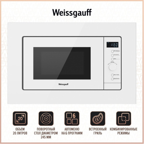Встраиваемая микроволновая печь Weissgauff HMT 220 WG Grill