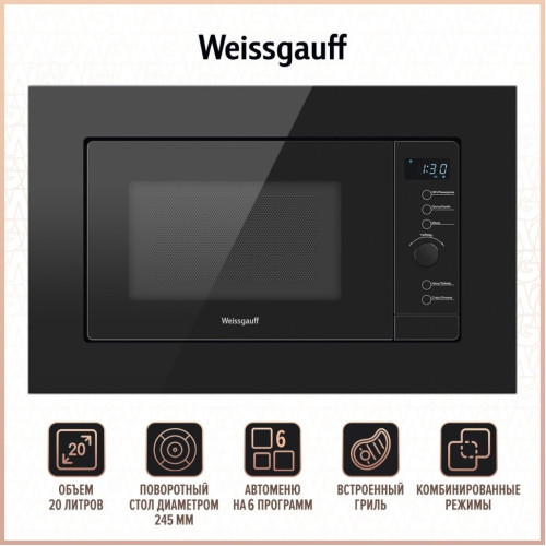 Встраиваемая микроволновая печь Weissgauff HMT 620 BG Grill