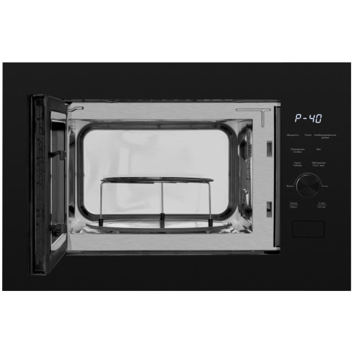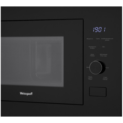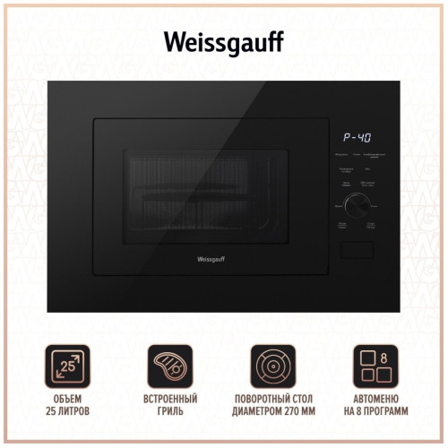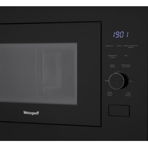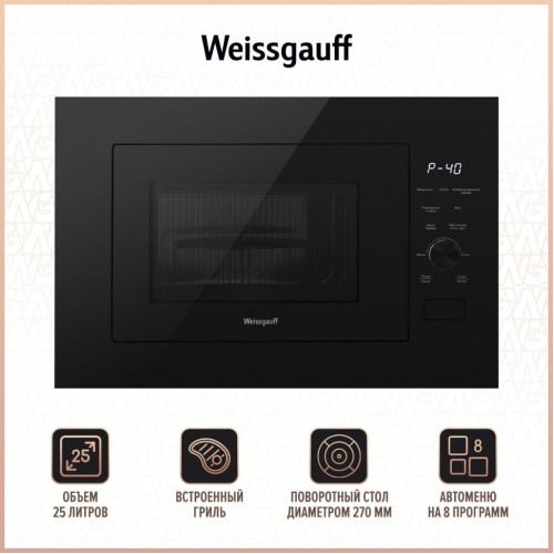 Встраиваемая микроволновая печь Weissgauff с объемом 25 литров, выполненная в черном цвете, равномерно разогревает еду при помощи поворотного стола, а также оснащена грилем с возможностью работы в комбинированном режиме и набором программ автоменю!