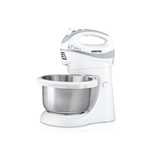 Миксер Centek CT-1107 относится к стационарному типу: в оснащение этого кухонного прибора входит автоматически вращающаяся чаша из нержавеющей стали. Объем чаши значителен: он равен 3.5 л. Мощности миксера (она равна 350 Вт) достаточно для быстрого смешивания или взбивания любых ингредиентов. Модель может работать на 5 скоростях. В наличии импульсный режим. В комплектацию миксера Centek CT-1107 входят 2 пары хромированных насадок. Предусмотрена кнопка выброса насадок. Безопасность использования миксера на высоте: прибор защищен от перегрева. Благодаря наличию резиновых ножек миксер не подвержен скольжению по любой поверхности. Питание устройства осуществляется от сети. Длина электрического кабеля равна 1.2 м. Миксер окрашен в классический белый цвет. Пластик, из которого изготовлен прибор, имеет высокую стойкость к механическим воздействиям. Вы по достоинству оцените привлекательный дизайн коробки, в которую упакован миксер. В комплект поставки модели входит руководство по эксплуатации.
