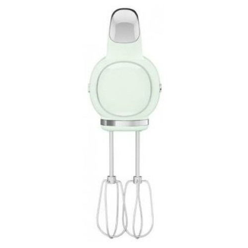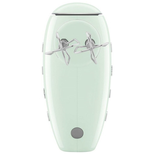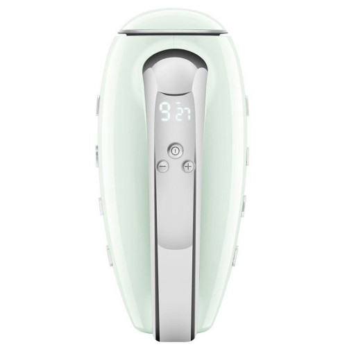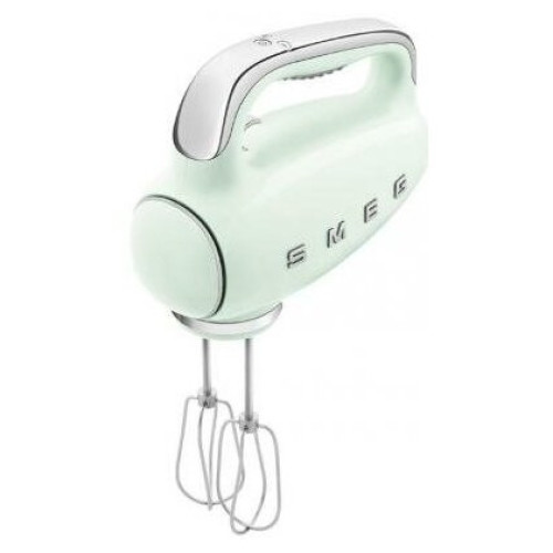 Smeg HMF01 представляет собой функциональный и удобный ручной миксер, погружная часть которого выполнена из нержавеющей стали. В модели имеется 9 скоростных режимов, а также турбо-режим с плавным стартом. Smeg HMF01 выполнен в стильном дизайне, который сочетает в себе внешний вид 50-х годов и современную мощность. Конструкция миксера позволяет легко взбить и смешать различные продукты одной рукой. В комплекте поставляются две пары венчиков, а также два крюка для теста. Выбранная скорость отображается на встроенном LED-дисплее.