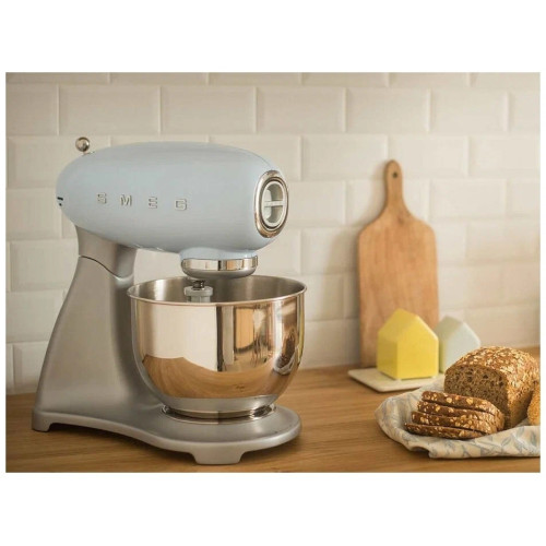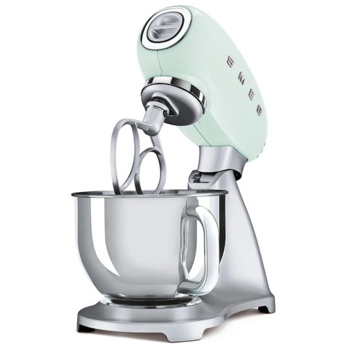 Миксер SMEG SMF02PGEU Планетарный миксер Smeg SMF02PGEU пастельного зеленого цвета в стиле50-х годов подойдет и ретро-кухне, и современной. Мягкий, неформальныйоттенок зеленого оказывает расслабляющий эффект в сочетании со светлымиоттенками интерьера и превращается в необычный цветовой акцент в темных,классических интерьерах. Этот цвет несет в себе как традиционнуюэстетику пятидесятых, уют и легкость, так и свежесть новизны приправильном использовании. При взгляде на этот оттенок появляютсяприятные ассоциации с летом, листьями мяты, свежими овощами. Даннаямодель — лучший выбор для тех, кто предпочитает спокойствие, равновесиево всем, включая дизайн кухонного интерьера. Планетарный миксер —устройство, которое освободит вас от монотонной ручной работы и помогутсэкономить много времени в самом процессе готовки. С его помощью можновыполнять различные кухонные операции, а если вы приобрететедополнительные насадки, например, мясорубку или насадку для нарезкиспагетти, возможности миксера станут практически безграничны.Конструкция специально разработана для максимально эффективногоиспользования. Благодаря нескользящим ножкам и материалу корпуса,устройство надежно и устойчиво. В комплекте есть металлические насадки —венчик для взбивания и крюк для теста — можно смешивать легкие продукты(например, сливки) и плотные. На корпусе есть порт для дополнительныхнасадок. Особенности модели: плавный старт вращения, регулировкаскорости — 10 ступеней, блокировка вращения при поднятой смесительнойголовке. Особенности: Цвет: Пастельный зеленый Отделка: Глянцевый Эстетика: Стиль 50-х г.г. Материал корпуса: Литой алюминий Цвет основания: Серебристый Материал основания: Литой алюминий Материал чаши: Нержавеющая сталь Цвет фронтальной заглушки: Серебристый Материал фронтальной заглушки: Пластик Цвет электрического кабеля: Серый Логотип: Накладной Программы/ функции Скорости вращения: 10 Плавный старт: Да Управление Тип управления: Рычаг Материал рычага: Нержавеющая сталь Технические характеристики Принцип действия: Planetarium Контроль скорости вращения: Электронный Тип мотора: Direct motion (прямой привод) Мощность мотора: 800 Вт Блокировка вращения при поднятой смесительной головке: Да Защита мотора от перегрузки: Да Регулировка наклона смесительной головки: Кнопка Порт для крепления дополнительных аксессуаров: Фронтальное Объем чаши: 4,8 L Ручка чаши: Да Нескользящие ножки: Да Цвет кабеля: Серый Объем Яичные белки, максимум: 12 Яичные белки, минимум: 2 Тесто для торта, максимум: 2,0 кг Тесто для десертов: 2,6 кг Тесто для хлеба/ пиццы: 1,3 кг Тесто для яичной пасты: 500 г теста с 3 яйцами (средний размер яйца 53-63 г) Взбитые сливки, максимум: 1 л Взбитые сливки, максимум: 100 мл Аксессуары в комплекте Венчик: Да Материал венчика: Нержавеющая сталь Плоская насадка для теста: Да Плоская насадка для теста. Можно мыть в посудомоечной машине.: Да Материал плоской насадки: Алюминий Крюк для замешивания теста: Да Материал крюка для замешивания теста: Алюминий Чаша: Да Крышка для чаши: Да Материал крышки: Пластик Электрическое подключение Тип электрической вилки: (F;E) Schuko Номинальная мощность: 800 Вт Напряжение: 220-240 В Частота тока: 50/60 Гц Длина электрического кабеля: 1 м Маркетинг /Коммуникации Книга рецептов: Да Логистическая информация Ширина изделия (мм): 405mm Глубина изделия (мм):