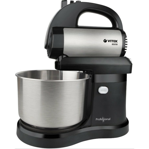 Миксер VITEK VT-1418 стационарного типа оснащен чашей из нержавеющей стали объемом 2,8 л и позволяет перемешивать разные продукты в пяти режимах. Скорость вращения насадок увеличивается благодаря функции «Турборежим», поэтому время приготовления блюда сокращается за счет интенсивности воздействия. Устройство можно использовать без перерыва максимально до 15 мин, после чего его необходимо отключить, чтобы предотвратить возможность перегрева мотора. Миксер VITEK VT-1418 активируется от подсоединения к стандартной электрической сети при максимальной потребляемой мощности 800 Вт. Корпус изготовлен из качественной стали, поэтому модель рекомендовано очищать от загрязнений при помощи мягкой влажной салфетки или губки. В комплектации устройства предусмотрено два венчика для взбивания жидких продуктов, а также крюки для приготовления густого теста. Вращающаяся чаша обеспечивает эффективность функционирования миксера. Удалять загрязнения со съемных деталей модели рекомендовано под теплой водой с применением моющих средств.