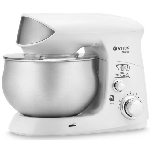 Миксер планетарный Vitek VT-1444 возьмет на себя выполнение множества кулинарных задач и избавит вас от трудоемкой монотонной работы. Например, она великолепно замешивает тесто густое и жидкое, не оставляя в нем комочков, готовит кондитерские кремы и превращает вареные овощи в воздушное пюре. При мощности 1000 Вт прибор имеет 6 скоростей планетарного вращения насадок. Его корпус изготовлен из пластика, а невосприимчивая к механическим воздействиям 3.5-литровая чаша – из нержавеющей стали. Емкость миксера Vitek VT-1444 дополнена прозрачной крышкой, через которую можно наблюдать за происходящим внутри. Благодаря специальному отверстию в ней ингредиенты в чашу можно добавлять непосредственно в процессе готовки. Это очень удобно, особенно когда речь идет о сложносочиненном тесте или креме для торта.