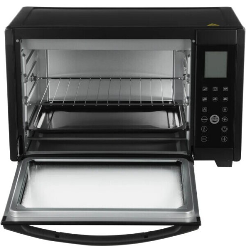 Жарьте рыбу и стейки на решетке-гриль, запекайте птицу, готовьте ароматные пироги, равномерно размораживайте и разогревайте продукты в электрической мини-печи Hyundai MIO-HY097 . Этот универсальный прибор сочетает в себе функциональность электрической духовки с вертелом, гриля и тостера. Модель быстро прогревается до нужной температуры благодаря высокой мощности 1600 Вт. Объем печи – 35 л. В ней можно зажарить крупную курицу, сделать мясо в фольге или пиццу. Удобное сенсорное управление. В одно касание включайте мини-печь, управляйте конвекцией, вертелом и еще тремя режимами, выбирайте автопрограммы, устанавливайте нужную температуру от 40 до 230 °C и регулируйте заданные параметры кнопками «+» и «-». На светодиодном LED-дисплее голубого цвета высвечиваются все необходимые индикаторы процесса приготовления. 8 автопрограмм. Выбирайте нужную из предустановленных автопрограмм, включая разморозку и поддержание тепла, приготовление пиццы, кекса, хлеба, свиных отбивных и других блюд. Конвекция и вертел. Конвекция позволит эффективнее и равномернее размораживать или запекать продукты. С ней блюда готовятся значительно быстрее. Мини-печь оснащена вертелом для запекания цыпленка с хрустящей корочкой, шашлыка или овощей. Таймер до 3 часов. Расширьте список интересных блюд, которые вы сможете приготовить. Томите говядину в течение нескольких часов или расстаивайте дрожжевое тесто для пирогов. Достаточно включить таймер и идти заниматься своими делами. Большой набор аксессуаров. В комплекте идут решетка-гриль, эмалированный прямоугольный противень, вертел и держатель для него, ухват, поддон для крошек и масла. Готовьте любимые блюда легко и комфортно. Эргономичный дизайн. Наблюдайте за процессом приготовления через широкую стеклянную дверцу. Внутренняя подсветка включается автоматически, когда прибор работает. Размещайте мини-печь Hyundai MIO-HY097, где вам удобно: нескользящие ножки делают модель устойчивой на любой поверхности, будь то подоконник или столешница. Благодаря современному дизайну и универсальной черной расцветке мини-печь гармонично впишется в любой интерьер. Добавить в корзину