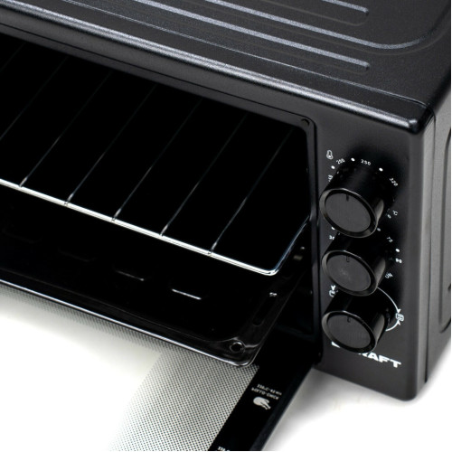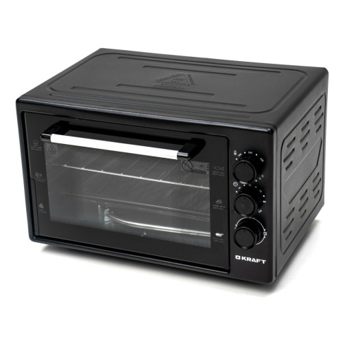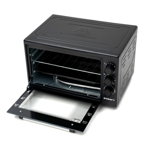 Электрическая духовка Kraft KF-MO4500 BL в черном цвете отличается удобством в использовании, компактностью и функциональностью. Объем духовки 45 литров. В комплект входят прямоугольный противень для выпечки, круглый противень, решетка. Мощность 1500 Вт обеспечивает быстрый нагрев. Максимальная температура нагрева 320 °C и хорошая теплоизоляция позволяют готовить блюда кавказкой кухни. Минимальная температура 50 °C подходит сушки фруктов и овощей, а также для приготовления домашней пастилы и пирожных. При такой температуре удобно размораживать продукты. Печь Kraft KF- MO4500 BL оснащена подсветкой и механическим таймером на 90 минут со звуковым оповещением.