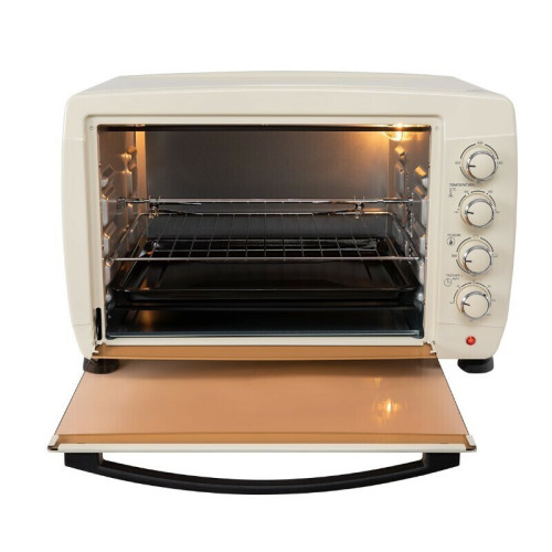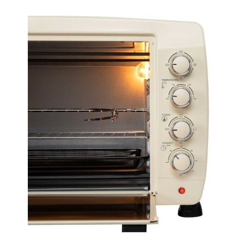 Мини-печь оснащена таймером отключения, которым можно запрограммировать точное время приготовления до 120 минут. Когда заданное время пройдет, таймер автоматически выключит духовку и напомнит об этом звуковым сигналом. Прозрачное стекло дверцы модели, и внутренняя подсветка позволяют наблюдать за процессом приготовления.