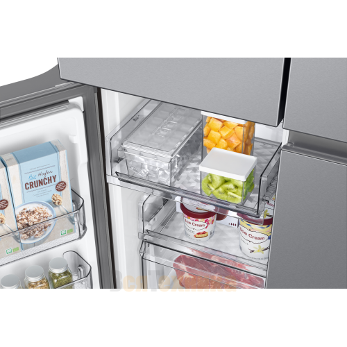 - Автоматический ледогенератор: Вам больше не нужно наполнять и замораживать формы. Холодильник сам производит чистый и прозрачный лед, подавая его через специальный диспенсер на двери.