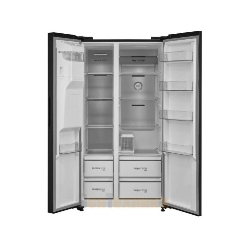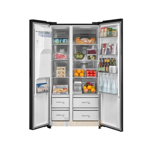 Холодильник относится к классу большой вместимости, его полезный объем оптимально распределен между холодильной и морозильной камерами. Многодверная конструкция (Side-by-Side) не только выглядит солидно, но и обеспечивает невероятное удобство доступа: свежие продукты и готовые блюда всегда под рукой в широкой холодильной секции, а запасы заморозки аккуратно разложены в вертикальной морозилке.