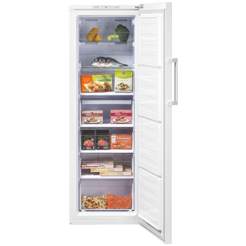 Beko RFNK 290 T21 - вместительная морозильная камера, предназначенная для заморозки и хранения большого количества продуктов. В морозильной камере используется автоматическая система размораживания No Frost, поэтому владельцу не придётся размораживать её вручную. Внутри камеры циркулирует охлаждённый воздух, он препятствует образованию наледи на стенках и инея на продуктах. Класс энергопотребления морозильной камеры соответствует стандарту А+, за год она расходует 310 кВтч, что делает её эксплуатацию чрезвычайно выгодной. Морозильная камера оснащена дисплеем, на который выводится информация о режиме работы, а также о температуре внутри камеры. Если температура повысится, прибор сообщит об этом владельцу световым сигналом. Если владельцу необходимо быстро заморозить продукты для длительного хранения, он может воспользоваться режимом суперзамораживания.