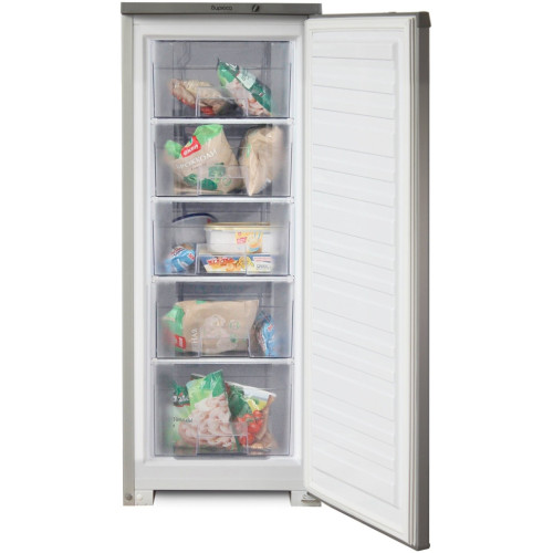 Морозильный шкаф Бирюса М114 - однокомпрессорный отдельно стоящий бытовой прибор, предназначенный для долговременного хранения продуктов. Модель снабжена 1 камерой, полезный объем которой составляет 94 л. Внутри камеры предусмотрено 5 отдельных секций, в которых можно хранить продукты различных типов во избежание смешивания запахов: мясо отдельно от рыбы, грибов, фруктов, овощей и ягод. Регулирование температуры охлаждение обеспечивается поворотом специальных ручек.