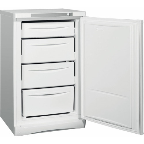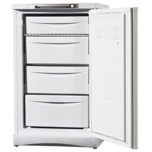 Морозильный шкаф Indesit SFR 100.001 — достаточно вместительный аппарат с общим полезным объемом морозильной камеры в 118 л. Мощность устройства для замораживания продуктов составляет 6 кг/сутки. Морозильник быстро охлаждает продукты с последующей заморозкой, тем самым готовит их к длительному хранению. Морозильный шкаф компактен. Его масса составляет 43 кг. Морозильная камера оснащена четырьмя выдвижными ящиками. Есть возможность для перевешивания двери. Морозильник весьма устойчив к сбоям электричества и перепадам напряжения. Прибор размораживается вручную, поэтому владельцу время от времени придется производить подобную процедуру. Шкаф надежно сохраняет оптимальную температуру в течении 15 часов при отключении электричества.