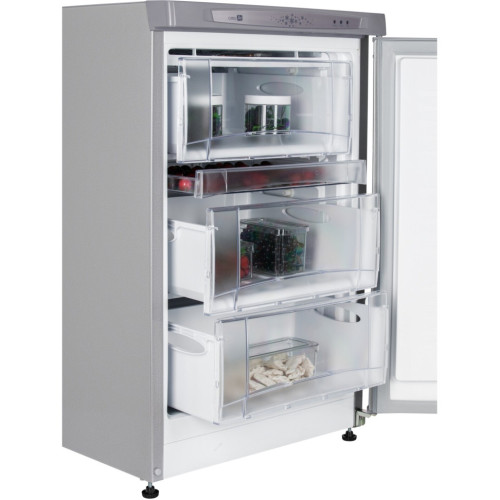 Морозильник NORDFROST DF 159 SSP с объемом камеры 115 л подходит для хранения всех необходимых продуктов для большой семьи. Высота устройства 90 см. Морозильник относится к высокому классу энергоэффективности А+. Модель способна охладить до 8 кг ягод, овощей, фруктов, птицы и полуфабрикатов в сутки. Откорректировать температуру позволит механический термостат, расположенный на панели управления внутри морозильной камеры. Морозильник имеет ручную систему оттаивания и ламинированную внутреннюю поверхность с антибактериальным покрытием. Максимально низкая температура в модели -18°С. Морозильная камера состоит из 3-х цельных выдвижных пластиковых ящиков и лотка для ягод. Ножки регулируются по высоте и помогут ровно выставить морозильник относительно пола. Дверь с накладной ручкой имеет возможность перенавешивания на другую сторону для комфортного открывания и установки модели в удобном месте. Корпус морозильника выполнен в серебристом цвете. Особенности и преимущества: - объем 115 л; - класс энергоэффективности А+; - механическое управление; - ручная система оттаивания; - ламинированная внутренняя поверхность с антибактериальным покрытием; - перенавешиваемая дверь; - цвет: серебристый. Внимание: габариты указаны с учётом ручки.