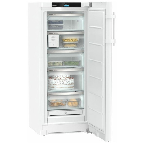 Морозильная камера с системой NoFrost Общие данные: Размеры: высота: 145,5 см ширина: 59,7 см глубина: 67,5 см * Общий объем: 237 л Полезный объем: 193 л Тип управления: электронный Класс энергопотребления: A * Климатический класс: SN-T (от 10С до 43С) Количество компрессоров: 1 Годовое потребление энергии: 183 кВтч/год * Цвет: белый Морозильное отделение: Система No Frost (Frost Free, Ноу Фрост) Диапазон температур: от -15 C до -28 C Светодиодное освещение Количество контейнеров: 5 FrostSafe: Полностью закрытые выдвижные ящики с прозрачной передней стенкой Механизмы выдвижения выдвижных ящиков: Встроенная направляющая выдвижных ящиков Система VarioSpace SpaceBox Поворотный лоток для приготовления EasyTwist-Ice Число аккумуляторов холода: 2 Поднос для замораживания Дополнительная информация: 2,4 TFT-дисплей цветной, сенсорный и свайповый экран Индикатор температуры SuperFrost: Настраивается на устройстве Сигнал открытой двери морозильного отделения: Настраивается на устройстве BottleTimer: Настраивается через приложение Блокировка экрана: Настраивается на устройстве Уровень шума: 36 дБ InteriorFit EasyOpen Закрывающее устройство Сторона открывания двери: Справа для сменной двери Перевешивание двери: Возможно самостоятельно Угол открывания двери: 115 Уплотнение двери: Сменное Регулируемые по высоте ножки: 2 Транспортировочные ручки: впереди и сзади Ролики для транспортировки сзади Вентиляция через лицевую панель Тип штекера: Евро Соединительный кабель (длина): 2 100 мм * Энергетическая эффективность, заявленная производителем, может быть достигнута в случае установки ограничителей на заднюю стенку прибора. Ограничители увеличивают глубину прибора на 3,5 см (1,5 см BluPerformance). Отказ от использования ограничителей не отразится на корректной работе прибора, однако уровень потребления электроэнергии несколько увеличится.