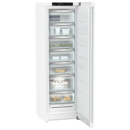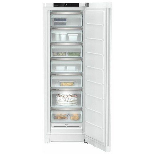 Основные характеристики - Тип: морозильник-шкаф - Расположение морозильной камеры: вертикальное - Расположение ручки: вертикальное - Климатический класс: SN-T - Тип компрессора: стандартный - Количество компрессоров: 1 - Размораживание морозильной камеры: No Frost - Минимальная температура: -15 °C - Количество камер: 1 - Общий объем: 271 л - Мощность замораживания: 18 кг/сутки - Хранение продуктов при отключении питания: 14 ч - Уровень шума: 40 дБ Морозильная камера - Объем морозильной камеры: 271 л - Количество контейнеров в морозильной камере: 7 - Количество отделений: 1 - Выдвижные контейнеры: да Управление - Тип управления: электронное - Способ управления: сенсорный - Расположение панели управления: на корпусе Дисплей - Цифровой дисплей: да - Тип дисплея: LCD, монохромный Индикация - Индикация температуры морозильной камеры: да - Регулировка яркости индикатора температуры: да - Индикация повышения температуры: да - Индикация открытой двери морозильной камеры: да - Индикация отключения питания: да - Индикация режима работы: да Электропитание - Класс энергопотребления: A - Энергопотребление: 400 кВтч/год - Напряжение: 220-240 B - Мощность подключения: 264.6 Вт - Длина сетевого шнура: 2.1 м - Режим энергосбережения: да Защита и безопасность - Тип сигнализации: акустический, оптический - Сигнализация о неисправности: да - Сигнализация об открытой двери: да - Сигнализация о повышении температуры: да - Сигнализация об отключении питания: да - Защита от детей: да Функции и возможности - Суперзаморозка: да - Система VarioSpace: да - Поддержка технологии SmartDevice: да - Система плавного закрывания двери: да - Режим «Шаббат»: да - Эксплуатация в неотапливаемых помещениях: да - Автономное сохранение холода: 14 ч - Дополнительная информация: режим PartyMode, выдвижной верхний ящик с функцией наклона, сменный дверной уплотнитель, оснащение можно мыть в посудомоечной машине, модуль SmartDevice приобретается отдельно Особенности конструкции - Встроенный вентилятор для распределения температуры: да - Регулируемые по высоте ножки: да Дверь - Количество дверей: 1 - Сторона открывания двери: правая - Возможность перенавески двери: да Цвет и материал - Цвет: белый - Цвет ящиков: прозрачный - Материал двери: сталь Контейнеры и полки - Количество контейнеров: 7 Комплектация - Ролики для транспортировки сзади: да - Ручки для транспортировки сзади: да Размеры и в.