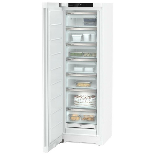 Морозильная камера с системой NoFrost Общие данные: Размеры: высота: 185,5 см ширина: 59,7 см глубина: 67,5 см Общий объем: 320 л Полезный объем: 271 л Тип управления: электронный Класс энергопотребления: A Климатический класс: SN-T (от 10С до 43С) Количество компрессоров: 1 Годовое потребление энергии: 306 кВтч/год Цвет: белый Морозильное отделение: Система No Frost (Frost Free, Ноу Фрост) Время сохранения холода при отключении электроэнергии: 14 ч Диапазон температур: от -15 C до -28 C Количество контейнеров: 7 FrostSafe: Полностью закрытые выдвижные ящики с прозрачной передней стенкой Механизмы выдвижения выдвижных ящиков: Встроенная направляющая выдвижных ящиков Выдвижной ящик с удобной функцией наклона Система VarioSpace SpaceBox Лоток для льда Поднос для замораживания Дополнительная информация: ЖК-дисплей монохромный, сенсорный экран Индикатор температуры SuperFrost: Настраивается на устройстве Сигнал открытой двери морозильного отделения: Настраивается на устройстве BottleTimer: Настраивается через приложение Блокировка экрана: Настраивается на устройстве Уровень шума: 40 дБ InteriorFit Утопленная ручка (с обеих сторон, вертикальная, сплошная) EasyOpen Закрывающее устройство Сторона открывания двери: Слева для сменной двери Перевешивание двери: Возможно самостоятельно Угол открывания двери: 115 Уплотнение двери: Сменное Регулируемые по высоте ножки: 2 Транспортировочные ручки: впереди и сзади Ролики для транспортировки сзади Вентиляция через лицевую панель Тип штекера: Евро Соединительный кабель (длина): 2 100 мм