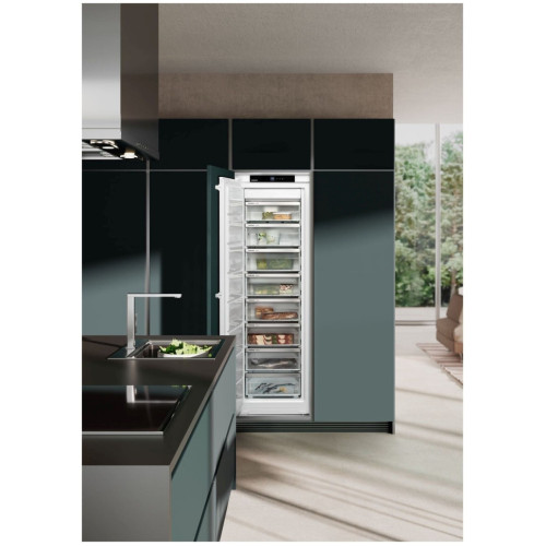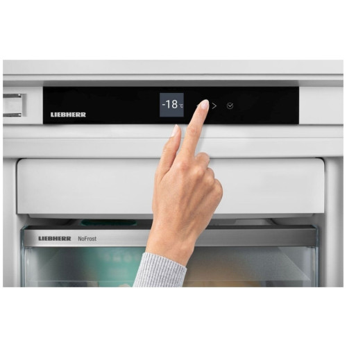 Морозильная камера Liebherr SIFNf 5128 с функцией NoFrost предназначена для заморозки и хранения продуктов. Модель имеет удобный индикатор температуры, а уровень шума не превышает 37 дБ. При отключении электроэнергии морозильная камера способна сохранять холод в течение 14 часов. Оснащена 8 выдвижными ящиками. Особенности Режим PartyMode В режиме PartyMode активируются функции SuperCool и SuperFrost. Через 24 часа Liebherr автоматически вернется в нормальный режим Режим SuperFrost Морозильное отделение увеличивает холодопроизводительность. Так температура останется постоянной, когда Вы закладываете незамороженные продукты. SuperFrost одновременно экономит энергию: если Вы не отключите функцию вручную, она отключится автоматически через 65 часов Режим SabbathMode В режиме SabbathMode выключено всё освещение морозильной камеры, а также все звуковые сигналы, шумы и экран. Режим SabbathMode отключается через 80 часов Система VarioSpace Благодаря системе VarioSpace можно просто вынуть отдельные выдвижные контейнеры морозильного отделения и стеклянные полки под ними, получив высокое пространство для хранения Встроенная направляющая ящика Встроенные направляющие всегда обеспечивают удобный доступ к Вашим продуктам при открытых и загруженных выдвижных контейнерах морозильного отделения. Ограничитель выдвижения предотвращает их выпадение. При задвижении выдвижные контейнеры без усилий перемещаются в оптимальное конечное положение, что обеспечивает правильное распределение воздуха перед выдвижными контейнерами и, следовательно, оптимальное охлаждение Аварийный сигнал открытой двери Аварийный сигнал открытой двери следит за тем, чтобы Вы не тратили лишнюю энергию и не испортили продукты. Как только дверь морозильной камеры остаётся открытой слишком долго, он предупредит Вас мигающим светом и звуковым сигналом. В зависимости от настройки, сигнал срабатывает через 1, 2 или 3 минуты Блокировка экрана Светящийся экран - магнит для детских рук. Блокировка экрана надёжно предотвращает непреднамеренное изменение настроек морозильной камеры Сменный дверной уплотнитель Сменный дверной уплотнитель можно снять несколькими простыми действиями, и так же легко вставить новый уплотнитель. Таким образом и эта часть морозильной камеры всегда будет безупречной и гигиенически чистой