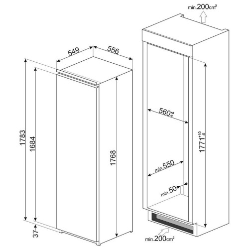 Встраиваемая однодверная морозильная камера, No-frost