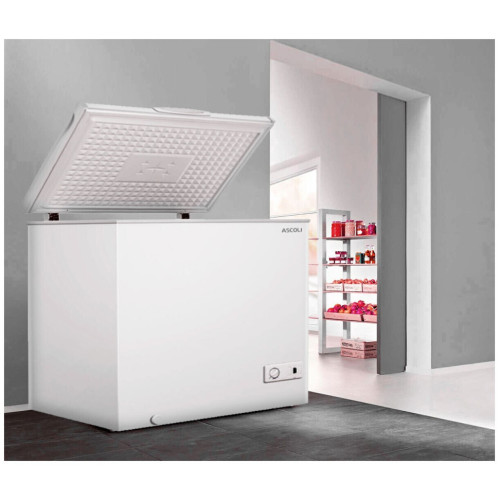 Морозильный ларь Ascoli AWS-420C с возможностью работы в режиме холодильника. Общий объем: 420 л, полезный объем: 394 л, класс энергопотребления: A, климатический класс: ST (от +18°С до +38°С).