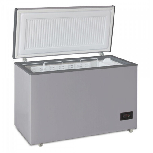Морозильный ларь Бирюса серебристого цвета подходит для длительного хранения продуктов дома, на даче, в магазине, точках общественного питания и в других заведениях. Устройство имеет производительность 17 кг/сутки, а объем составляет 225 л. В четырех подвесных корзинах удобно размещать мясо, рыбу, полуфабрикаты, грибы, ягоды и другие ингредиенты. Морозильный ларь позволяет устанавливать температуру от +10 до -18 °C, поэтому можно использовать устройство в качестве холодильника. Система No Frost предотвращает образование наледи и значительно облегчает процесс размораживания. На корпусе предусмотрен дисплей. Для удобства предусмотрен звуковой и визуальный сигнал повышения температуры. В конструкции предусмотрены откидные дверцы и колеса для удобного перемещения.