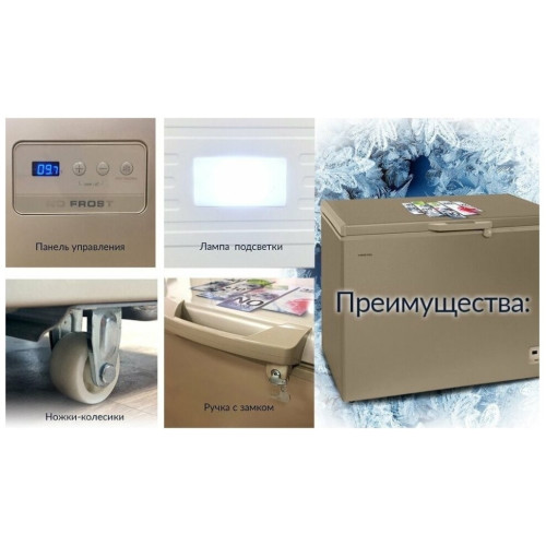 Тип Морозильный ларь Общий объем, л 320 Полезный объем, л 275 Размораживание морозильной камеры No Frost LED - подсветка Есть Энергопотребление В Энергопотребление, кВт/год 423 Хладагент R600a (40 г) Вспениватель теплоизоляции Cyclopentane Климатический класс SN, N, ST, T Температурный режим, °C +10 ~ - 40 Мощность замораживания, кг/cутки 22 Автономное сохранение холода, ч 10 Управление Электронное (дисплей) Встроенный замок Есть Количество корзин, шт. 4 Ножки / колесики , шт. 2 / 2 Уровень шума, дБ 41 Ширина, см 110,4 Глубина, см 55 Высота, см 90,3 Цвет Золотистый Вес нетто, кг 41 Гарантийный срок 2 года Страна производитель Китай Производитель HIBERG