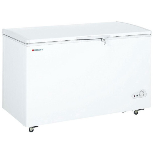 Морозильный ларь KRAFT BD (W) 350 QX имеет полезный объем 340 л. Модель оснащена замком и ножками-колесами, служащими для передвижения ларя.