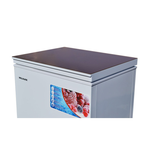 Морозильный ларь WILLMARK – это надежный морозильный ларь со стеклянной крышкой, с общим объёмом 305 литров, обеспечивающий безопасное и длительное хранение продуктов питания. Низкий уровень шума, экономный режим потребления электроэнергии – достоинства данной модели! Морозильный ларь WILLMARK CF-310G в белом исполнении, выполнен в привлекательном дизайне, имеет компактные размеры, что позволит ему отлично вписаться в любой интерьер. Модель снабжена двумя роликами для удобства перемещения. Панель управления состоит из механического регулятора мощности охлаждения размеченного на установку минимальной и максимальной температуры внутри камеры. В комплектацию модели входит две подвесные корзины.
