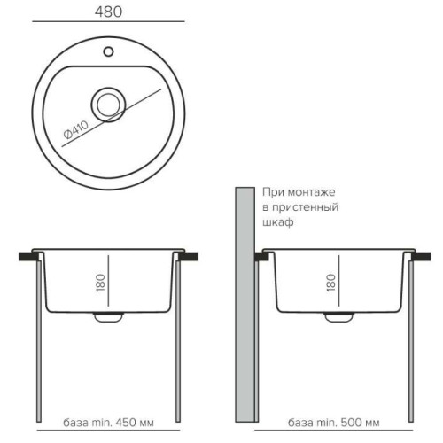 Кухонная мойка Polygran Quartz Bond 480 уголь. Круглая кухонная мойка из искусственного камня от российского завода Polygran. Отличается максимально увеличенной чашей для данного размера и формы. Круглая форма позволяет разместить мойку в углу, сэкономить место на небольшой кухне и более эффективно использовать освободившееся пространство. За круглой чашей легко ухаживать, так как она не имеет граней, которые необходимо протирать. За чашей имеется специальная площадка с заводским отверстием для установки смесителя. Основу композитного материала моек серии QuartzBond составляет цветной кварцевый песок и полимерные связующие, в соотношении: 80% кварцевого наполнителя и 20% связующих. Используется сырье преимущественно российского производства. Уникальная формула композитного материала, разработанная специально для данной линейки, делает мойки торговой марки QuartzBond легкими и при этом невероятно прочными. * Производитель QuartzBond * Материал изготовления искусственный камень * Форма мойки круглая * Страна Россия * Тип монтажа врезная сверху * Вес, кг 6 * Гарантия 3 года * Поверхность матовая * Размер выпуска, дюйм 3,5 * Расположение перелива в основной чаше