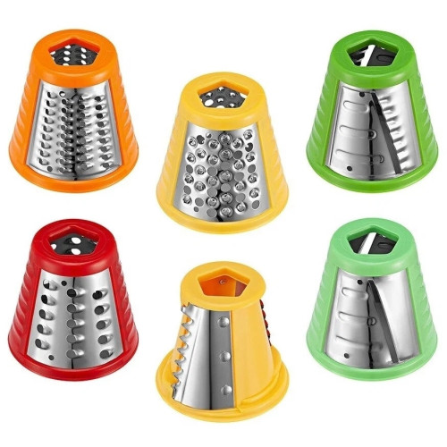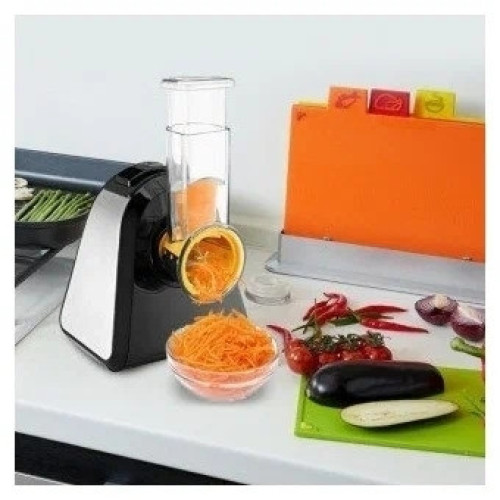 Мультирезка Kitfort КТ-3047 Электрическая терка КТ-3047 предназначена для терки и шинковки овощей, фруктов и других пищевых продуктов в домашних условиях. В комплекте есть 2 терочных ножа, 2 шинковочный ножа, 1 насадка измельчитель и 1 насадка для приготовления картофеля фри. Заточка ножей не требуется, они изготовлены из высококачественной нержавеющей стали. Корпус прибора выполнен из металла и пластика. Электрическая терка проста в использовании, ее легко мыть.