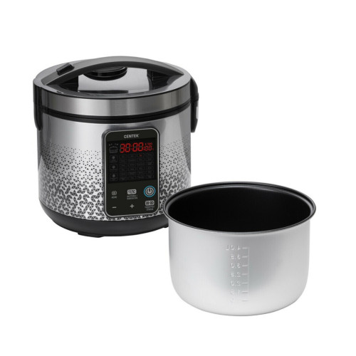 Мультиварка Centek CT-1499 идеально впишется в интерьер вашей кухни и поможет быстро и легко готовить вкусные и полезные блюда. Чаша с антипригарным покрытием объемом 5 литров и компактный корпус мультиварки из металла и пластика просты в уходе. Прибор имеет 25 программ, что позволит выбрать оптимальный режим приготовления для каждого блюда. Вы сможете приготовить в мультиварке детское питание, кашу, суп, йогурт, потушить или пожарить овощи и мясо или испечь пирог. Мультиварка Centek CT-1499 оснащена электронным управлением, благодаря чему вы легко установите необходимую программу. Функция «Мультиповар» позволяет устанавливать время и температуру приготовления того или иного блюда вручную. Также есть таймер отсрочки старта продолжительностью до 24 часов. Мультиварка мощностью 900 Вт обеспечит быстрое приготовление пищи. После окончания приготовления можно воспользоваться функцией поддержания температуры в чаше.