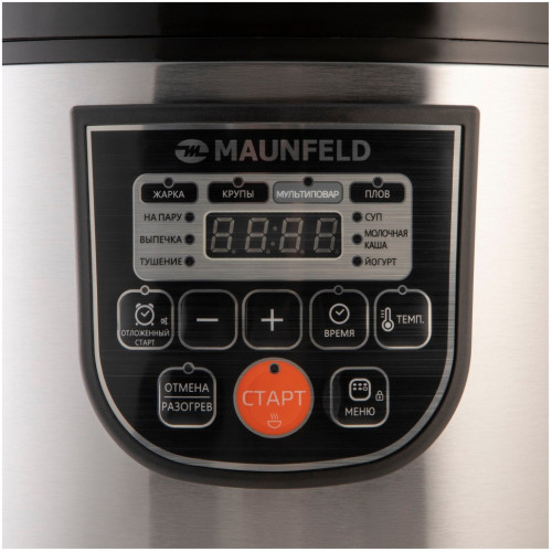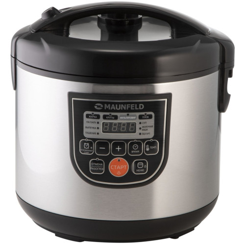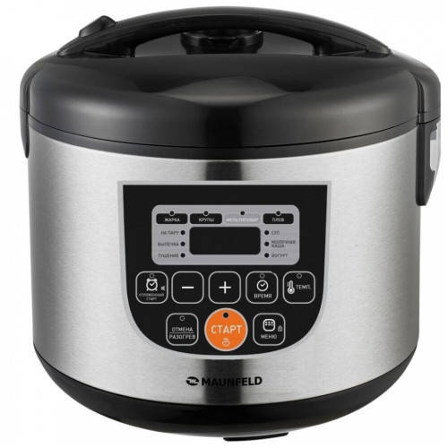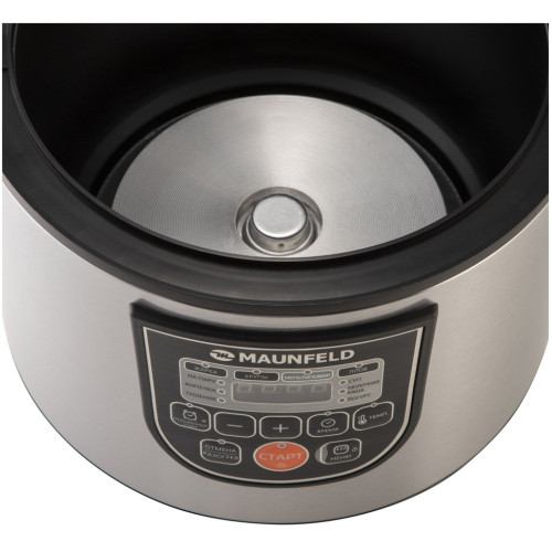 Мультиварка Maunfeld MPMC-860.10S освободит вас от стояния у плиты. Достаточно лишь положить нужные ингредиенты в чашу, а температуру и время приготовления прибор подберёт сам. Вам останется только наслаждаться блюдом! обширное «меню» У этой модели десять автоматических программ. «Каша», «Крупы», «Суп», «Жарка», «Тушение», «Плов» – вы сможете готовить и завтраки, и обеды, и ужины. «На пару» пригодится поклонникам здорового питания и тем, кто придерживается диеты. Кроме того, есть режимы «Йогурт» и «Выпечка», так что мультиварка вполне способна составить альтернативу духовому шкафу. В комплект входят лопатка, ложка для помешивания и мерный стакан. решайте сами Желаете предаться кулинарным экспериментам и самостоятельно настроить температуру приготовления? К вашим услугам режим «Мультиповар»: выставляйте уровень нагрева в диапазоне от 35 до 180 градусов. проще простого У прибора очень удобное и наглядное управление: все надписи сделаны на русском языке, выбор параметров сопровождается световой индикацией. Полезна возможность отложить старт (до 24 часов): получите горячее блюдо к нужному времени. Например, заложите все ингредиенты вечером, а утром вас будет ждать ароматная каша. Не беда, если вам захочется подольше поваляться в кровати: мультиварка сохраняет пищу горячей в течение 12 часов. простой уход Объём чаши – 5 литров, так что за один раз вы сможете приготовить блюдо даже для большой семьи. Благодаря антипригарному покрытию частички пищи не прилипнут к ёмкости, и вы без труда её помоете. Это разрешается делать и вручную, и в посудомоечной машине. Клапан для выпуска пара съёмный, поэтому его очистка тоже не причинит вам хлопот.