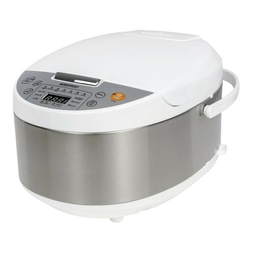 Мультиварка NORDFROST MC 550 WX позволит значительно сэкономить ваше время и готовить любимые блюда с максимальным сохранением вкусовых качеств, витаминов и полезных свойств. Модель с объемом чаши 5 л обладает основными функциями современной духовки, кашеварки, пароварки и многой другой кухонной техники. Панель управления прибора представлена кнопками, индикацией программ и дисплеем, на котором отображаются настройки процесса приготовления. Мультиварка оснащена 13 автоматическими программами, включая очень удобную функцию «Мультиповар», с которой можно воплощать любые кулинарные шедевры. Диапазон установки температуры в этом режиме – от 35 до 160°С с шагом в 5 градусов. Диапазон установки времени – от 5 минут до 2 часов. Вы можете разогревать и подогревать блюда, готовить рис, макароны, супы, йогурт, молочную кашу и крупы, выпекать пироги, а также жарить, запекать или тушить мясо, рыбу или овощи. Приготовление на пару сохраняет питательные вещества продуктов и жизненно важные витамины. Приготовление блюд на пару менее калорийно, ведь для их приготовления не нужно масло. Для удобства ухода за моделью предусмотрен съемный паровой клапан. Функция «Отложенный Старт» позволяет отложить время начала приготовления пищи на срок до 24 часов. Это удобно, например, для приготовления завтрака, установив определенные настройки уже с вечера. При окончании любой программы, кроме «Йогурт», загорается индикатор «Подогрев» и автоматически запускается режим поддержания температуры готового блюда на уровне 70-75°С до 12 часов. Мультиварка комплектуется чашей с антипригарным покрытием, контейнером-пароваркой, лопаткой и мерным стаканом. Модель выполнена в белом цвете с корпусом из нержавеющей стали. Наслаждайтесь каждый день разнообразием блюд вместе с мультиваркой NORDFROST MC 550 WX!