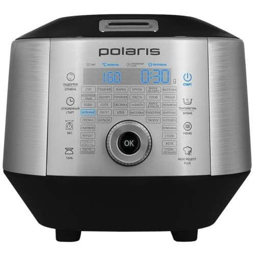 Мультиварка Polaris EVO 0445DS Silver Встроенные весы. 300 режимов приготовления с функцией - Мой рецепт plus. Большой дисплей - Touch screen. Чаша с керамическим покрытием Anato с удобными ручками - 4 л. 3D нагрев. Scale inside Technology. Автоматическое определение веса ингредиентов в чаше, времени работы и программы приготовления. Сенсорная панель Touch&Cook, большой многофункциональный LED дисплей. Технология TWIST DIAL - многофункциональный дисковый манипулятор. Технология 3D нагрева – равномерный нагрев со всех сторон. Поддержание температуры 24 часа. Таймер отсрочки до 24 часов позволяет приготовить еду к назначенному времени. Сохранение программы при сбое электропитания – 1 час. Отмена автоматического подогрева. Керамическое покрытие чаши Anato (Корея) – прочное, устойчивое к царапинам, безопасное для здоровья. Объем чаши позволяет приготовить блюдо до 8 порций. Чашу можно мыть в посудомоечной машине. Аксессуары: - контейнер для варки на пару; - мерная чашка; - плоская ложка; - половник; - стаканчики для йогурта. Мощность: 860 Вт.