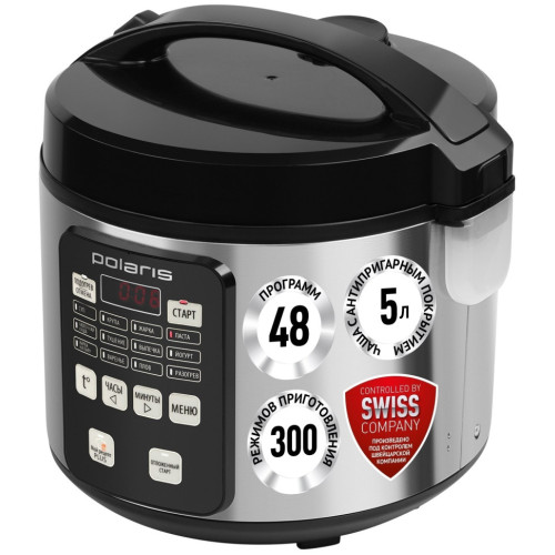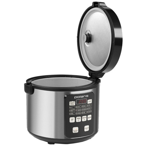 Мультиварка Polaris PMC 0583AD Мультиварка Polaris PMC 0583AD способна заменить несколько приборов на кухне и справиться с приготовлением пищи без хлопот. Устройство мощностью 770 Вт обладает 5-литровой чашей, в которой можно делать супы, гарниры, вторые блюда сразу на несколько порций. За счет антипригарного покрытия вам не придется стоять над прибором, пока он готовит пищу. Для простоты управления мультиварка Polaris PMC 0583AD оснащена таймером отсрочки на 24 часа, дисплеем и кнопками. Все эти опции позволяют получить готовое кушанье к нужному времени, например, к вашему пробуждению или возвращению с работы. За счет 48 автоматических программ можно делать самые разные блюда, включая йогурты, варенье и выпечку. Выбрать время для выполнения любой из них можно вручную. Опция поддержания температуры позволит ужинать или обедать теплым блюдом. Режимы работы: Мой рецепт Plus, Суп, Крупа, Жарка, Паста, Молочная каша, Тушение, Выпечка, Йогурт, Варка на пару, Варенье, Плов, Разогрев. Многофункциональный дисплей. 48 программ. Поддержание температуры 24 часа. Сохранение программы при сбое электропитания - 20 минут. Объем чаши позволяет приготовить блюдо до 10 порций. Антипригарное покрытие внутренней чаши - прочное, устойчивое к царапинам, безопасное для здоровья. Съемный шнур. Аксессуары: - столовая ложка - плоская ложка - мерная чашка - контейнер пароварка Мощность: 770 Вт.