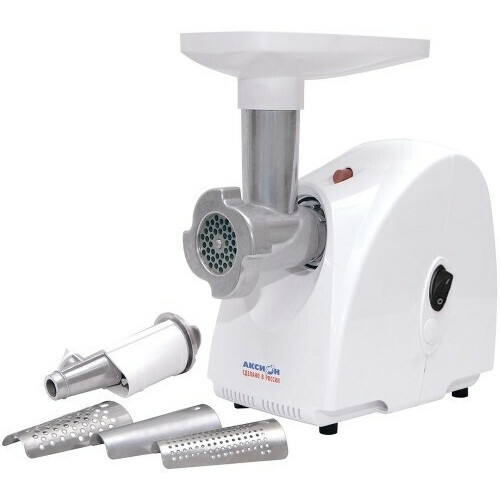 Мясорубка Аксион М 32.04 станет надежной помощницей тому, кто любит делать не только котлеты, но и свежие соки или заготовки на зиму. Ведь она снабжена дополнительной приставкой-соковыжималкой, которая способна извлечь сок с мякотью из овощей и фруктов. А с помощью кожуха для шнека соковыжималки можно даже производить набивку колбас. С мясом все быстро и просто – 1.7 кг фарша в минуту. И никаких особых усилий с Вашей стороны, только успевайте закладывать заранее нарезанное мясо. Кстати, повредить пальцы при этом не получится – горловина Аксион М 32.04 достаточно высокая, к тому же есть специальный толкатель для того, чтобы продвигать по ней кусочки.