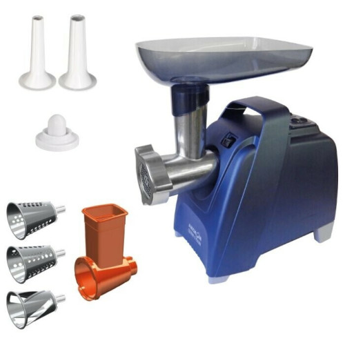 Мясорубка Аксион М 61.03, мощностью в 2000 Вт, легко справится с жилами и хрящами и может перекрутить 4 кг мяса за минуту. Есть функция реверса. Помимо 2 перфорированных дисков для фарша, в комплекте предусмотрена насадка-овощерезка с тремя сменными барабанами для резки ломтиками, крупного и мелкого шинкования. Таким образом, готовить супы и салаты станет еще проще. Так же есть насадка для кеббе.