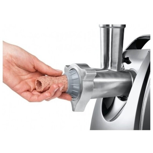 Мясорубка BOSCH MFW 68660 имеет корпус из нержавеющей стали, которая характеризуется устойчивостью к механическому воздействию и коррозии. Прорезиненные ножки не скользят на гладкой поверхности. Благодаря высокой производительности 4,3 кг/мин можно быстро переработать большой объем продукта. Устройство с номинальной мощностью 800 Вт позволяет эффективно измельчать мясо жестких сортов. Модель безопасна в эксплуатации, поскольку автоматически отключается при перегреве. Мясорубка BOSCH MFW 68660 — универсальное устройство, которое обеспечивает удобство приготовления множества блюд за счет наличия насадок разной формы. Измельчитель можно использовать для нарезки овощей, шинковки, отжима сока, прессования ягод и приготовления колбас. Модель очищается от жил и жестких волокон при активации режима реверса, при котором лезвия поворачиваются в обратном направлении. Мясо продавливается через решетку с отверстиями диаметром 5 мм, что позволяет создать фарш однородной консистенции. Насадки удобно хранить в специальном отделении. Устройство легко разбирается, что позволяет тщательно промыть все детали после работы.