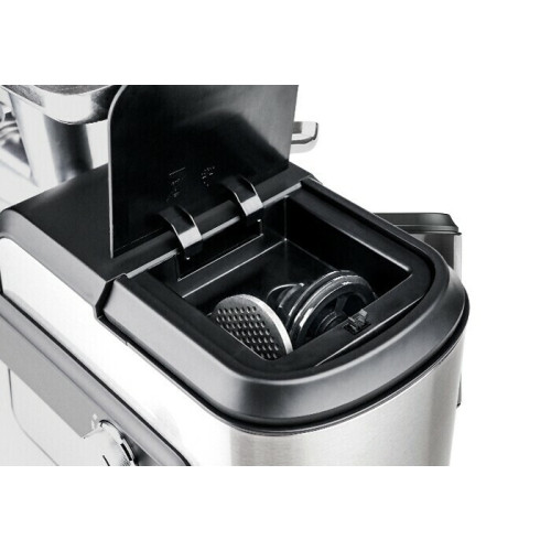 Мясорубка Centek CT-1623 оснащена двигателем мощностью в 2000 Вт, стальным коннектором и функцией реверс. Нож и диски выполнены из высококачественной стали, а производительность достигает 2 Кг мяса за 1 минуту. Стоит также выделить увеличенную трубу подачу V8 и удобным кнопки для управления. Комплектация: 2 литых стальных диска (5 мм / 7 мм) Насадка для колбас Насадка для кеббе Толкатель Кованный стальной нож