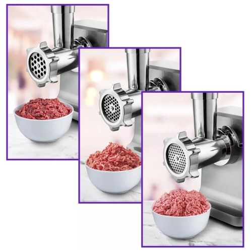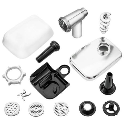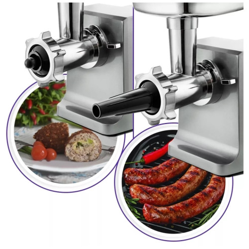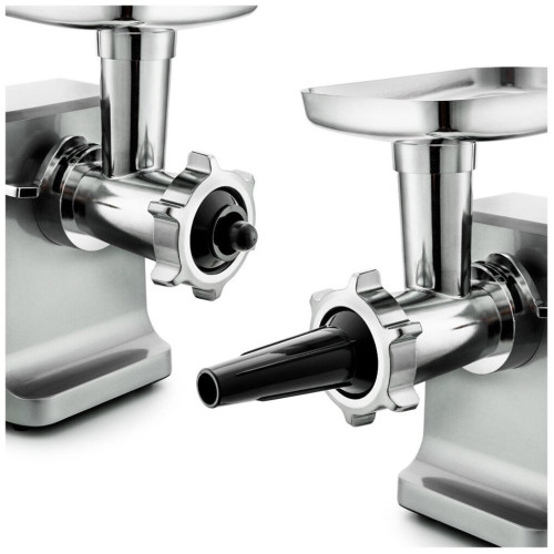 Мясорубка КТ-2108 оснащена мотором высокой мощности. Корпус устройства выполнен из металла. Мясорубка имеет одну скорость работы И функцию реверса. В комплект входят 3 решетки для изготовления фарша, а также специальные насадки для колбас и кеббе. Корпус и лоток мясорубки легко мыть и чистить. Эта модель удобна в использовании и отличается хорошей производительностью, а ее привлекательный внешний дизайн украсит любую кухню.