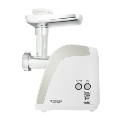 MAUNFELD MMG.2000W электрическая мясорубка с потребляемой мощностью 2000 Вт. Простая конструкция позволяет легко собирать и разбирать устройство, чтобы почистить все детали от остатков продуктов после работы. Теперь вы сможете с легкостью радовать родных и близких различными кулинарными изысками. Мясорубка MAUNFELD MMG.2000W - отличные характеристики, дизайн, практичность, надежность, простота использования и функциональность.