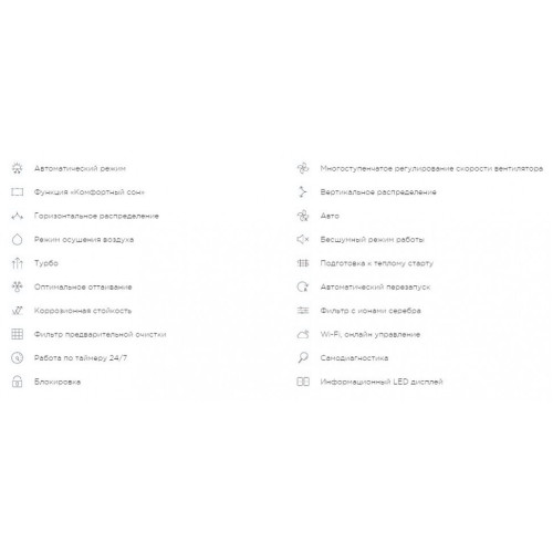 | Особенности | генератор анионов, самодиагностика, теплый старт, управление по Wi-Fi, функция запоминания настроек |