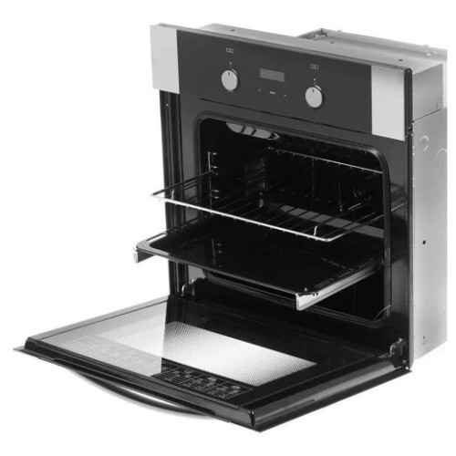 Электрический духовой шкаф со стеклянным фасадом и накладками из нержавеющей стали. Классический дизайн и механическое управление, дополнительно есть сенсорный таймер. Классический нагрев с автоматическим поддержанием заданной температуры дополнен конвектором. Конвекция ускоряет нагрев, равномерно распределяет жар по всему полезному объему жарочного шкафа и позволяет готовить на нескольких уровнях одновременно. В комплектации также усиленный гриль, съемные шашлычница и вертел. Многофункциональность духового шкафа открывает практические неограниченные возможности в готовке, а удобство использования упрощает ежедневный кулинарный труд. Направляющие для противней выполнены съемными. Установлены телескопические направляющие для удобного полного выдвижения противня, например для того, чтобы смазать выпечку на последнем этапе, а сама духовка с двухточечной подсветкой.Размеры монтажного проема - 56x55x58 см (ШхГхВ), сетевой шнур и вилка в наличии. Ключевые преимущества: - Таймер сенсорный; - Вертел с электроприводом; - Шашлычница; - Ускоренный нагрев с конвекцией; - Подсветка духовки двойная; - Телескопические направляющие; - Съемные проволочные направляющие духовки.