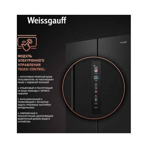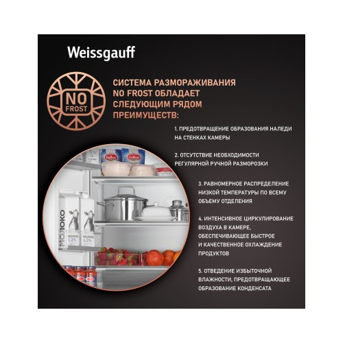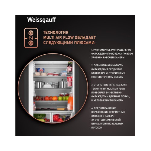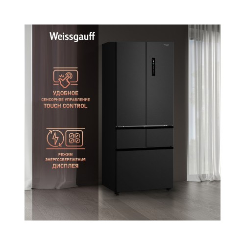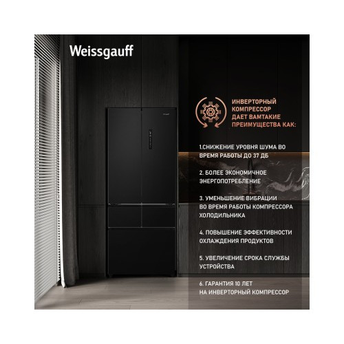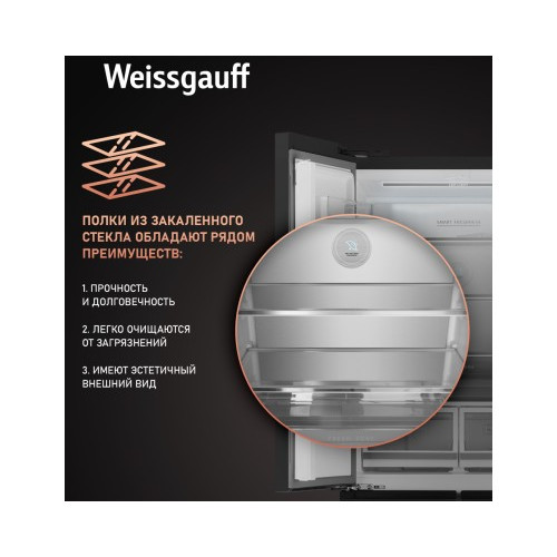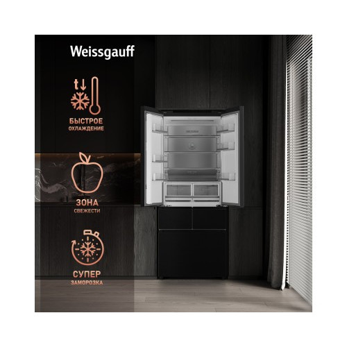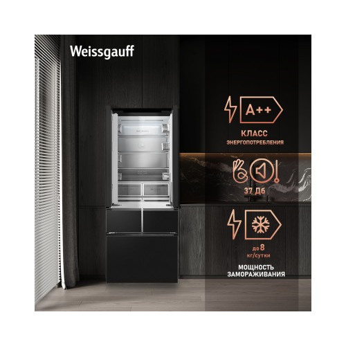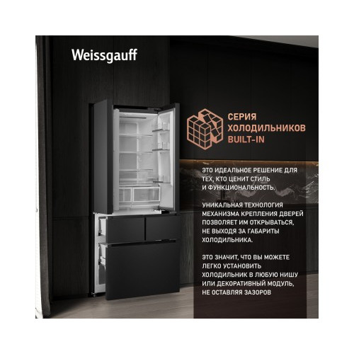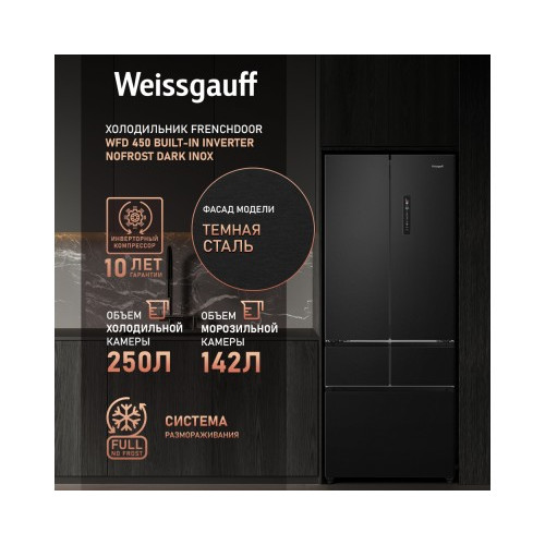 Отдельностоящий холодильник Weissgauff WFD 450 Built-in Inverter NoFrost Dark Inox