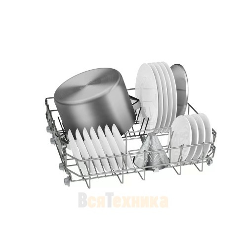 - Вместительность на 14 комплектов посуды: Просторная корзина для нижнего яруса и гибкая VarioFlex для верхнего позволяют с легкостью разместить даже крупные предметы: сковороды, противни, кастрюли.