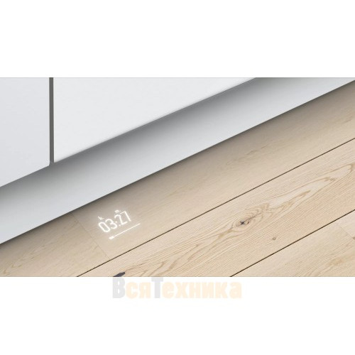 Машина оснащена широким набором программ, включая интенсивную мойку для сильно загрязненной посуды, бережную для хрусталя, быструю (60 минут), экономичную (Eco) и автоматическую (Auto), которая сама подбирает параметры. Индикация времени до конца цикла на полу и функция InfoLight (луч света на полу, показывающий, что машина работает) добавляют удобства в ежедневное использование.
