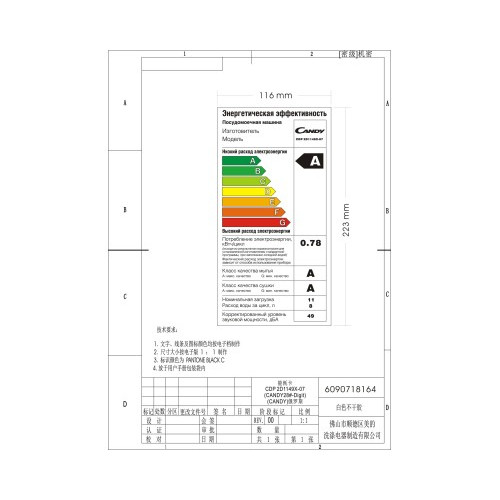 | Энергопотребление за цикл, кВт/ч | 0.78 |