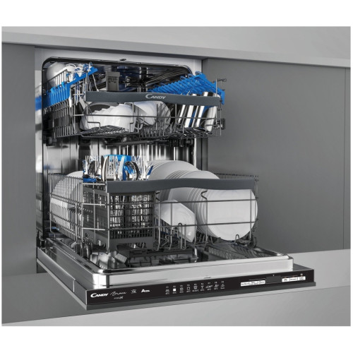 Встраиваемая посудомоечная машина Candy Brava CDIN 3D632PB-07 быстро и легко справится даже с самыми сложными задачами, сэкономив при этом ваши силы, время и другие ресурсы. Простое управление Текстовый дисплей и сенсор делают пользование ещё проще, а голосовой ассистент сокращает необходимость действий до минимума. Устанавливайте таймер отложенного старта до 24 часов, выбирая наиболее подходящий промежуток времени для себя. Большая вместимость Вы без труда можете разместить 16 комплектов посуды в корзинах – это значит, что будет загружено и помыто до 201 кухонного предмета. Также в набор входит воронка для засыпания соли и ёмкость для столовых приборов. Безопасность Полная защита от протечек гарантируется за счёт технологии AquaStop. При возникновении аварийных ситуаций она моментально срабатывает и прекращает подачу воды.