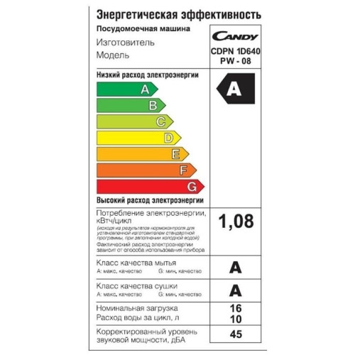 Посудомоечная машина Candy CDPN 1D640 PW-08